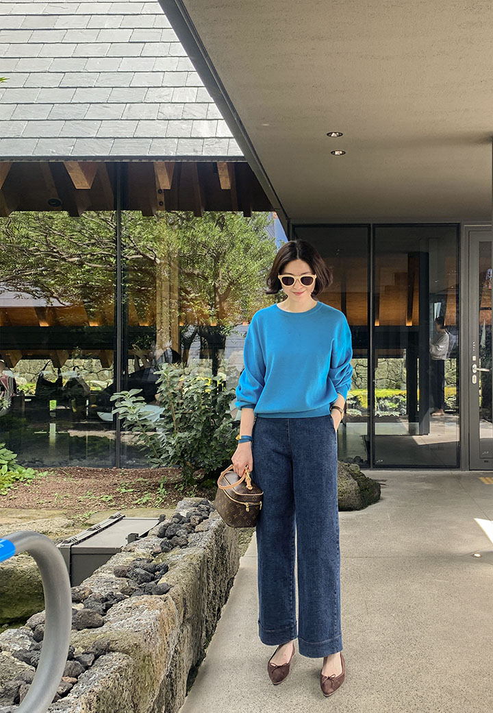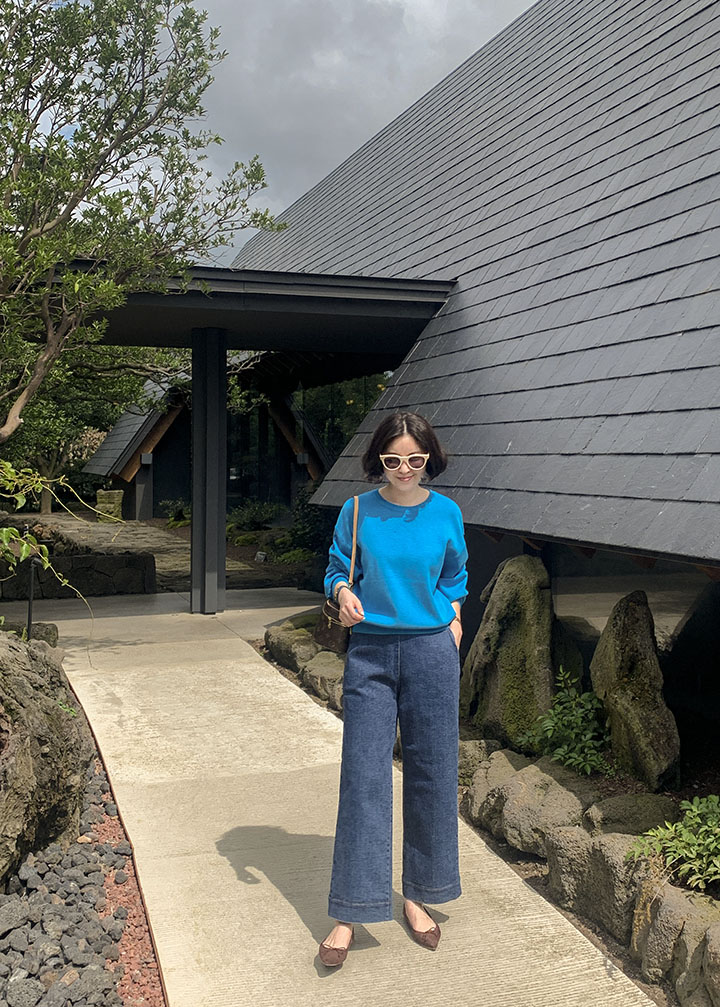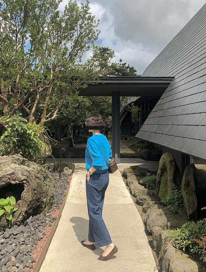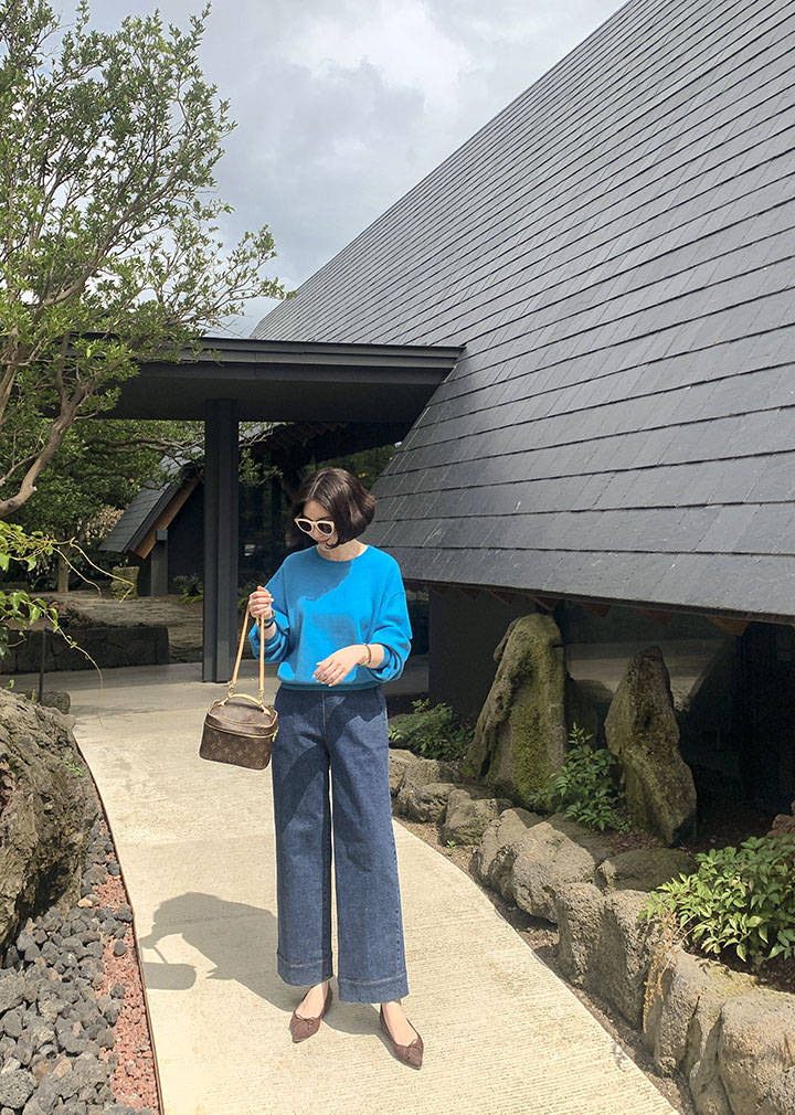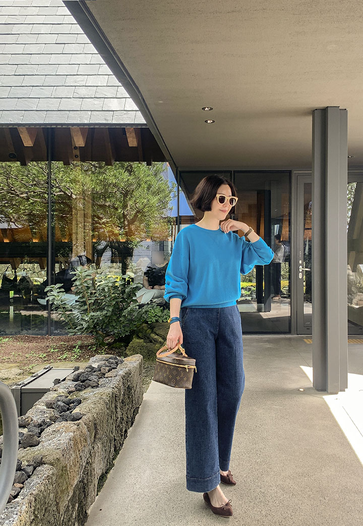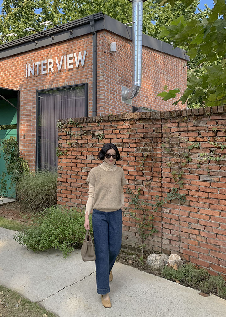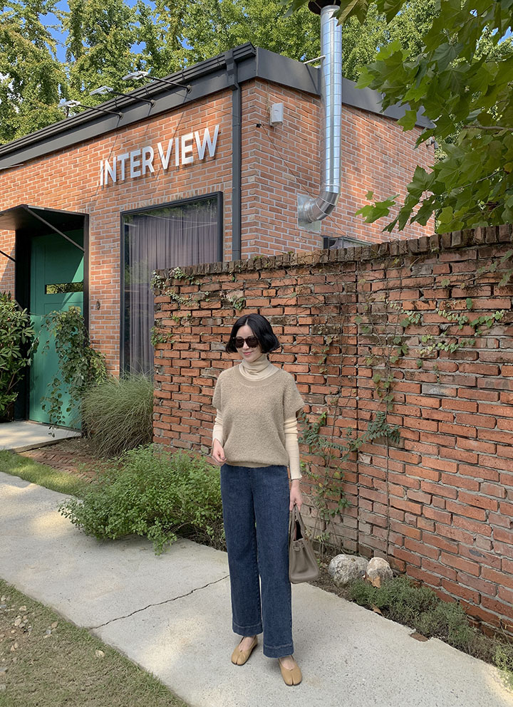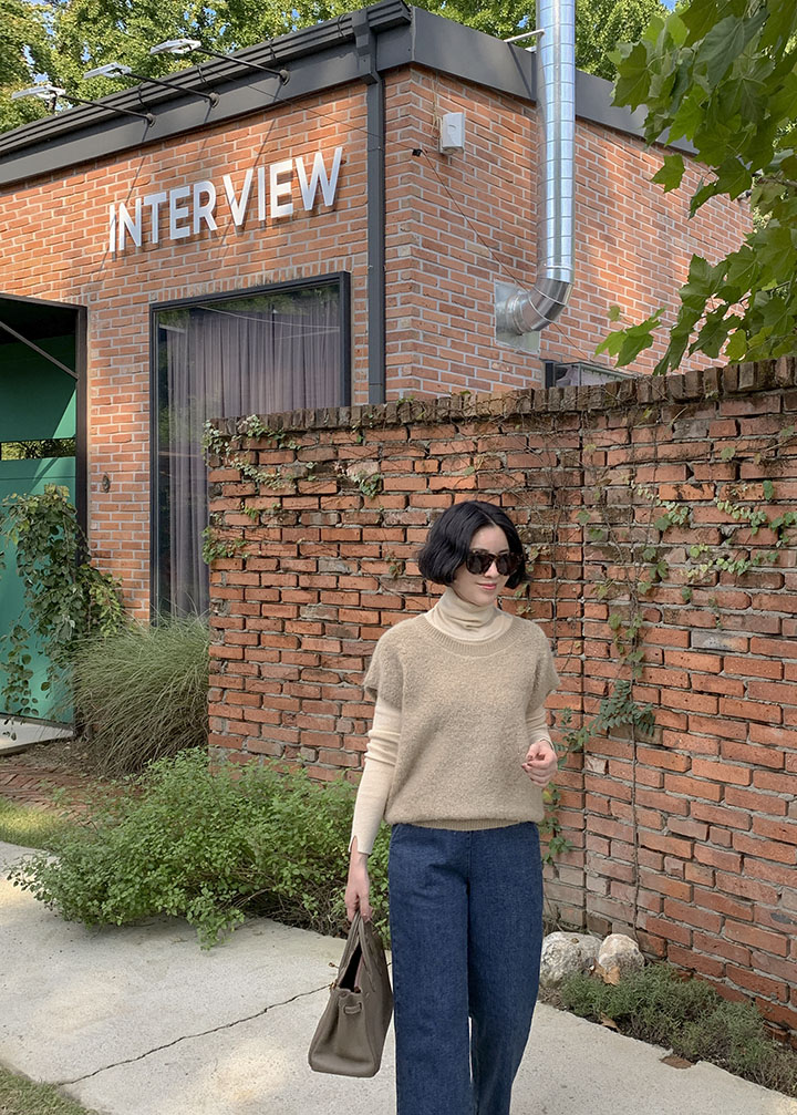 ユニークながらソフィスティケイトベスト+ポロセット!冬まで優しく着るのが好きです。