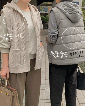 前はニットベスト 後ろ姿はパディングベスト ふわっとソフィスティケイトデザインのベストです^^