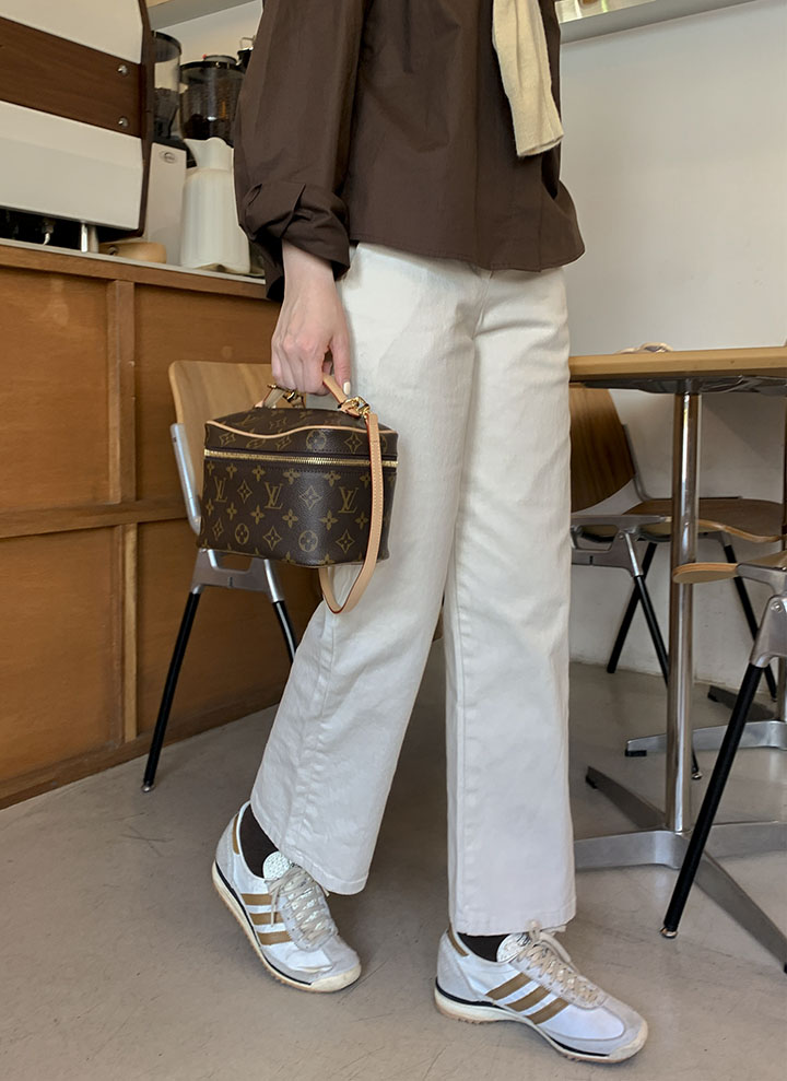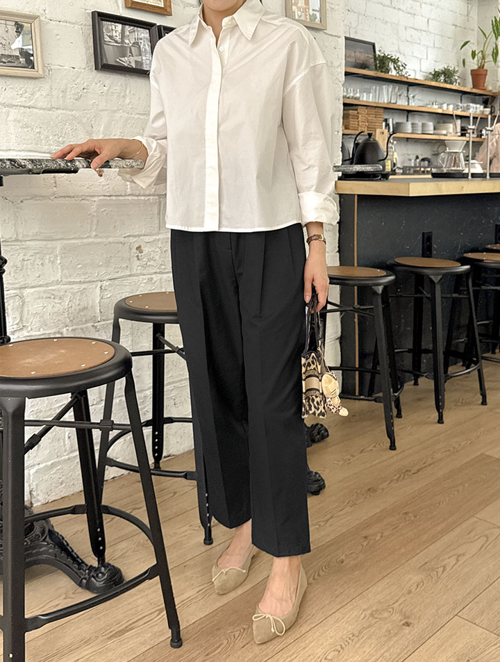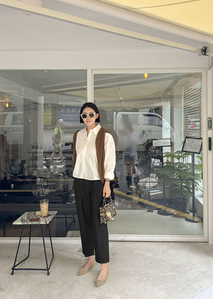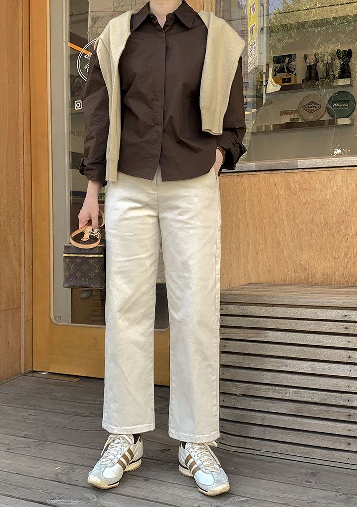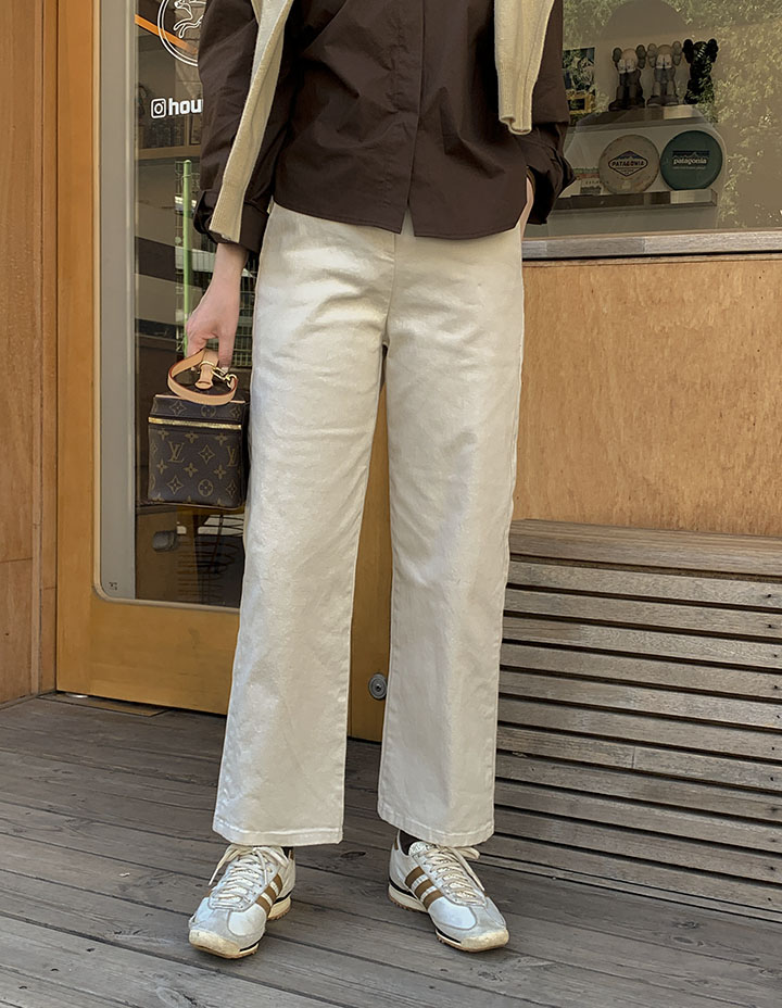 補正したように下半身の虐殺をすっかり隠してくれるストレートフィットパンツスパンで楽で安定感のある着心地です。