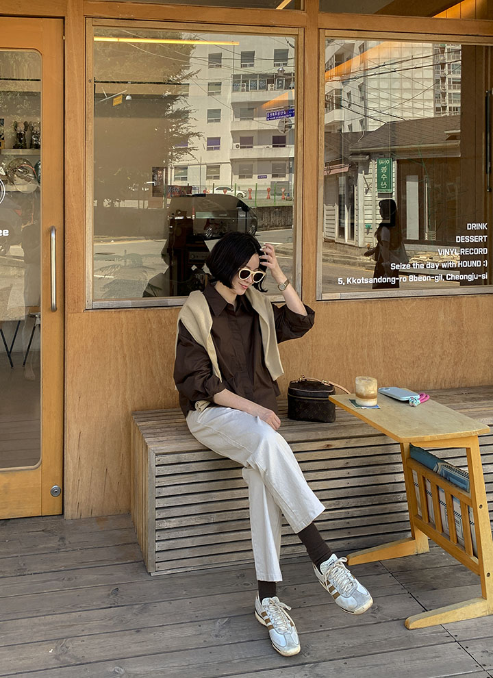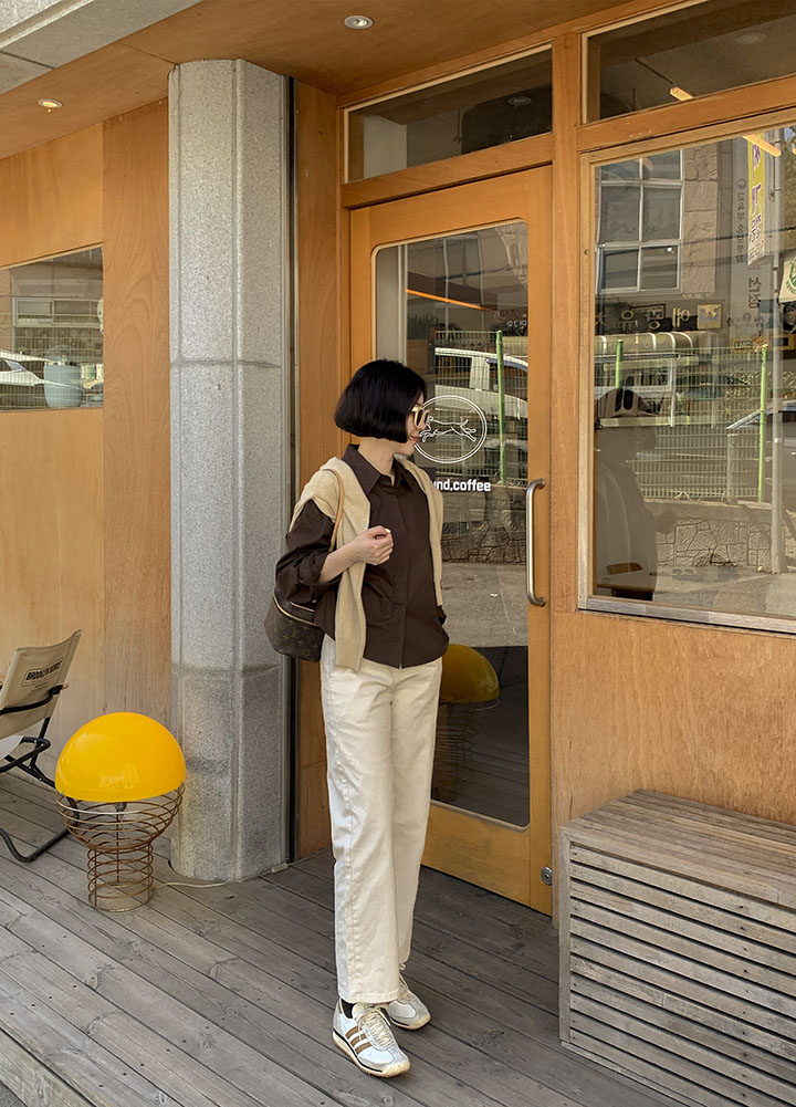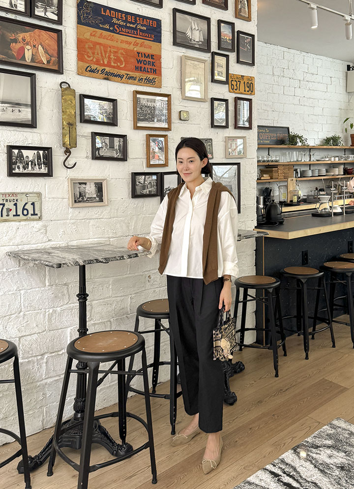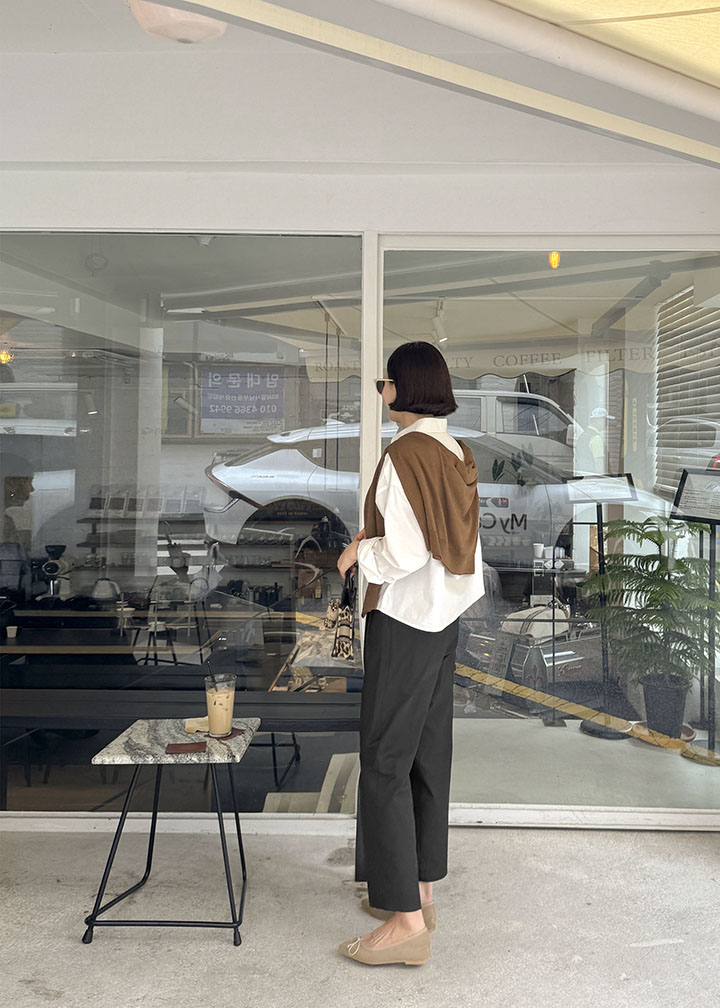 補正したように下半身の虐殺をすっかり隠してくれるストレートフィットパンツスパンで楽で安定感のある着心地です。