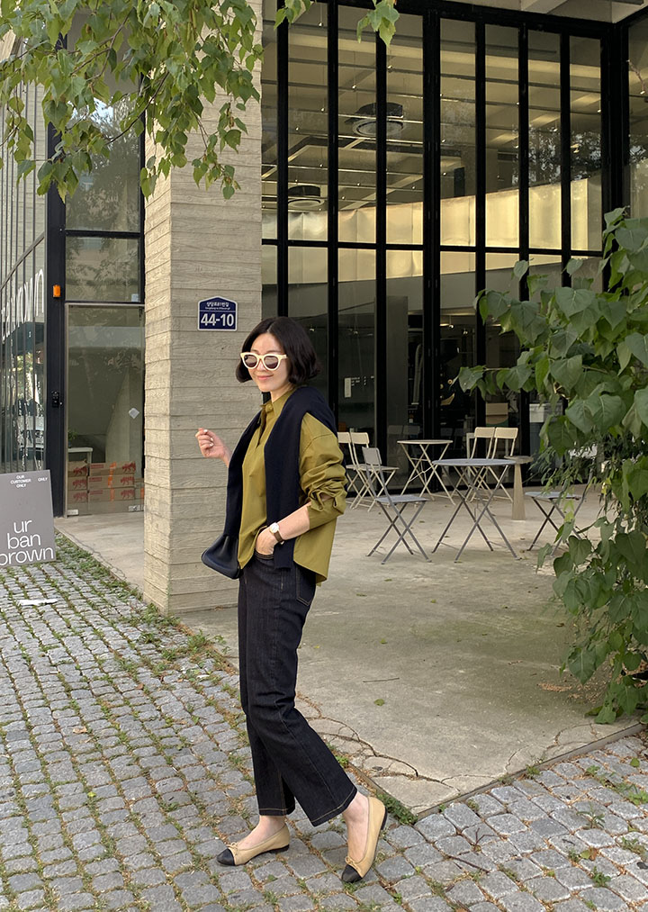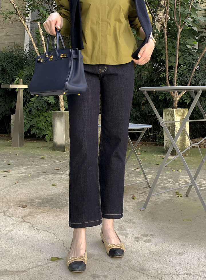 自作、異炎心配のないノンフェードデニムパンツ モダンできれいなムードのデイリーパンツ