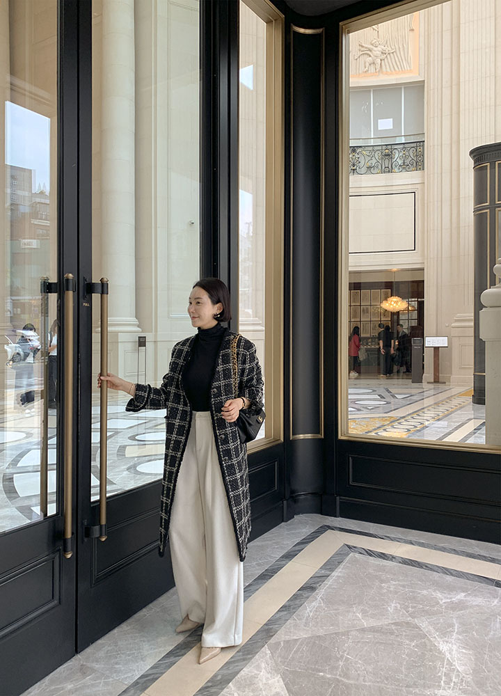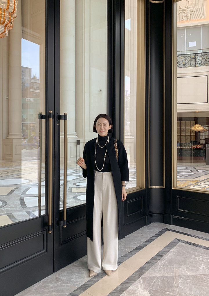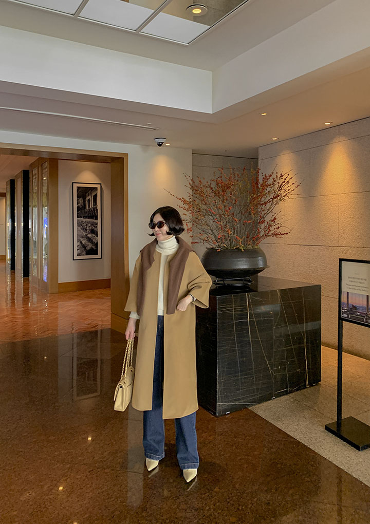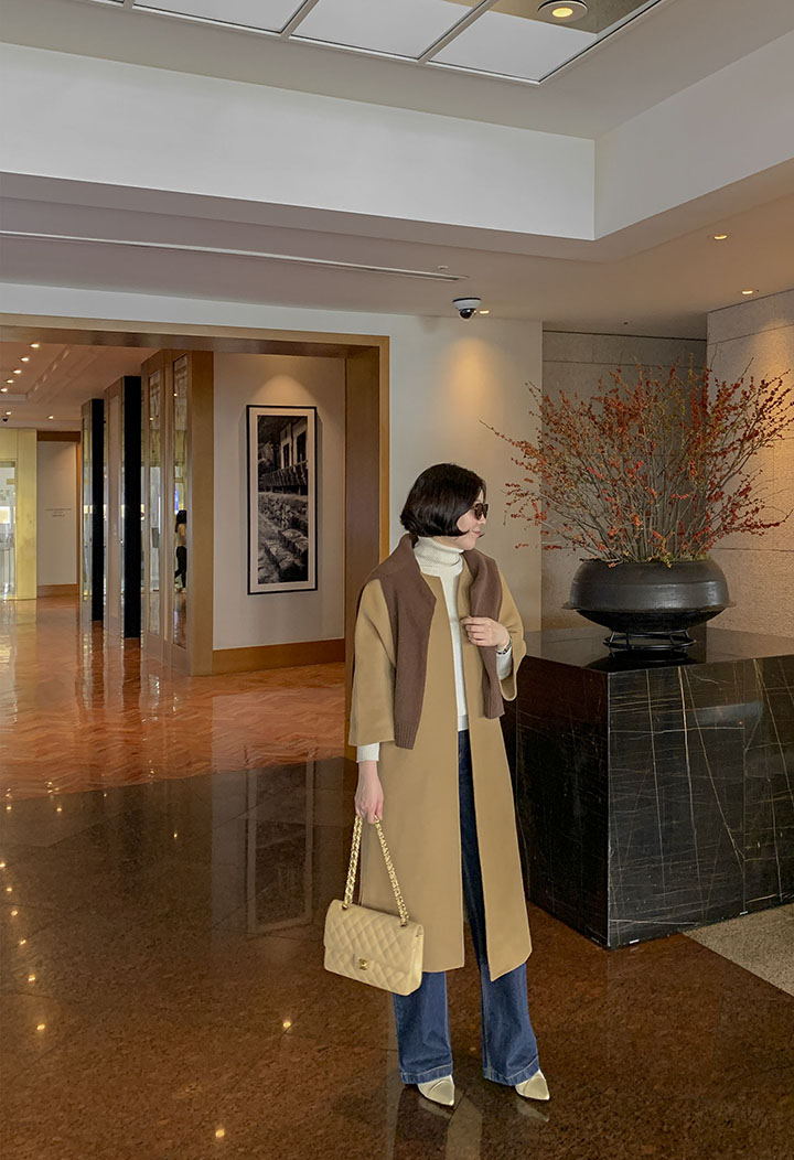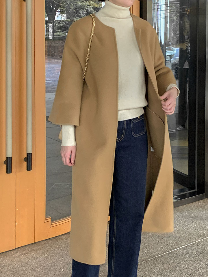 【プリオーダー3週間要】自社製作、コートひとつに仕上がるエレガンスムード 高品質ハンドメイドカラーなしウールコート