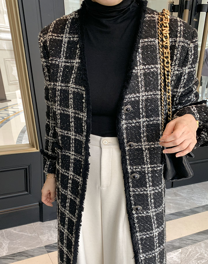 【プリオーダー2週間要】自主制作、パーティクルに感じられる高級感のあるムードキルティング裏地で一冬まで着るロングツイードコート