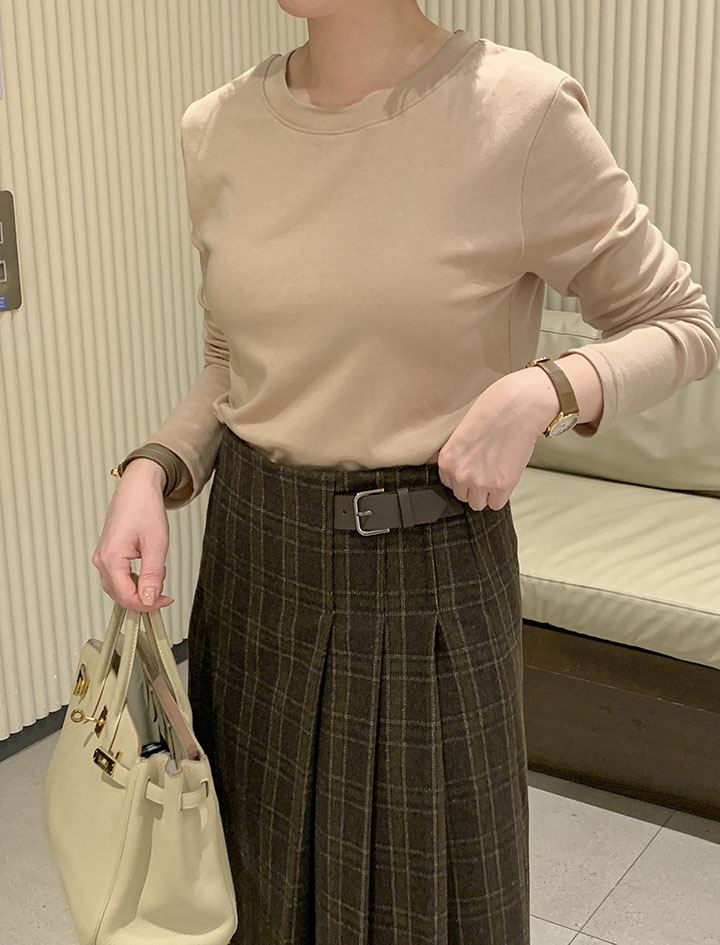 落ち着いたクラシックの定石、チェックウールスカート ふわふわのウール素材と、落ち着いたシルエットでスタイリッシュに