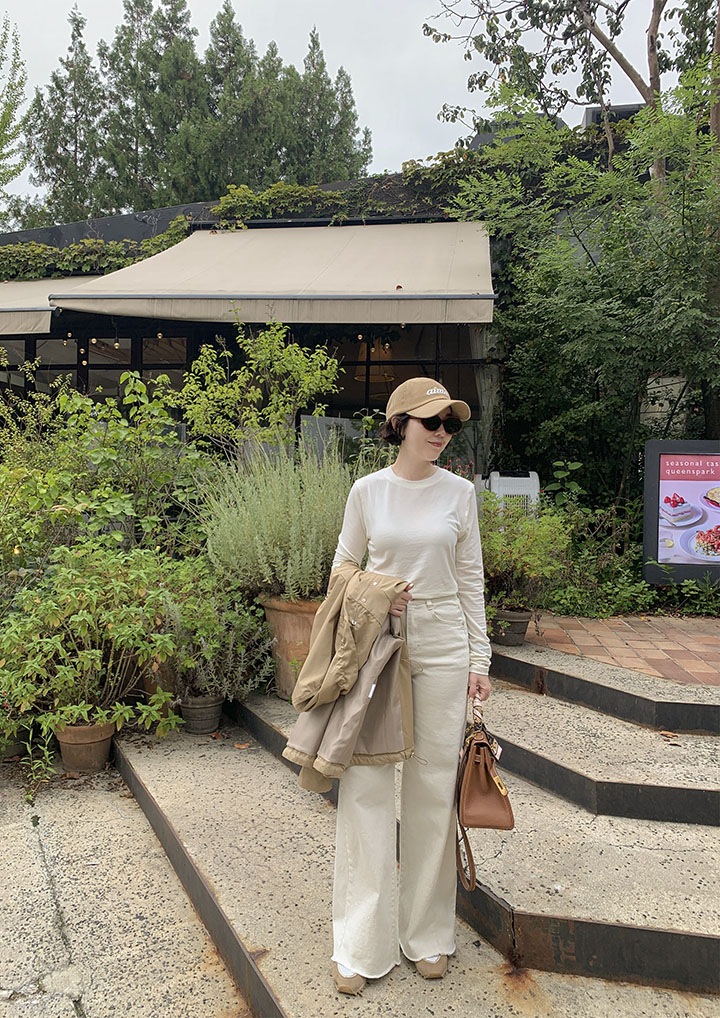 虐殺すっぽりカバーしてくれるブーツカット+秋のカラッとカラー感!しっかりとした素材感で一日中快適なスパンパンツ
