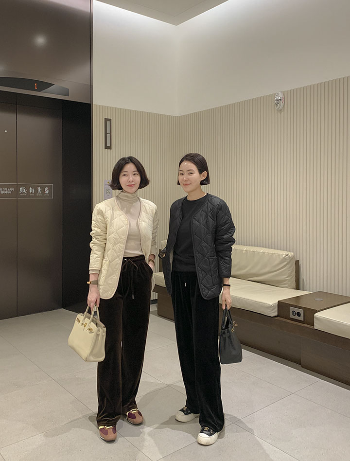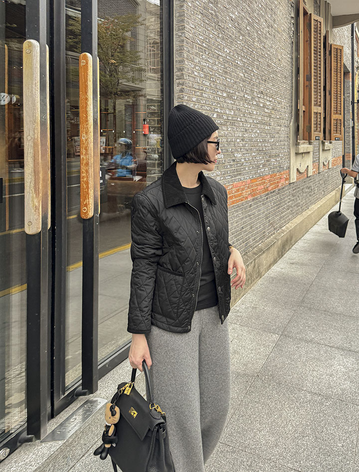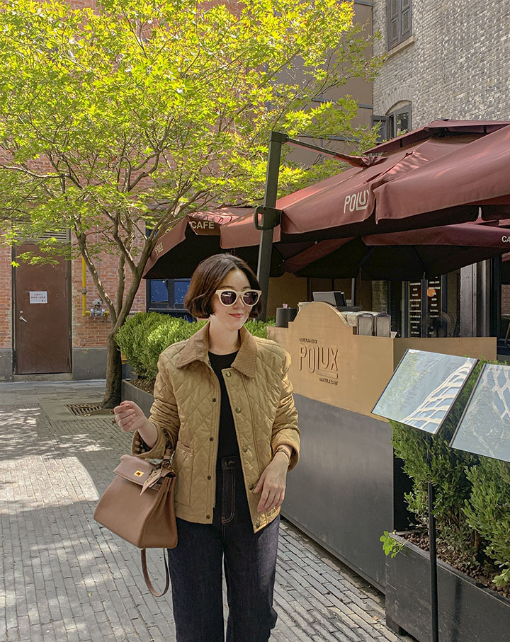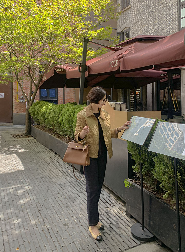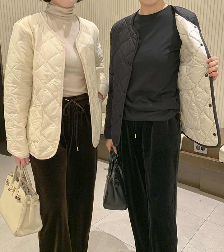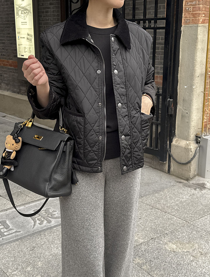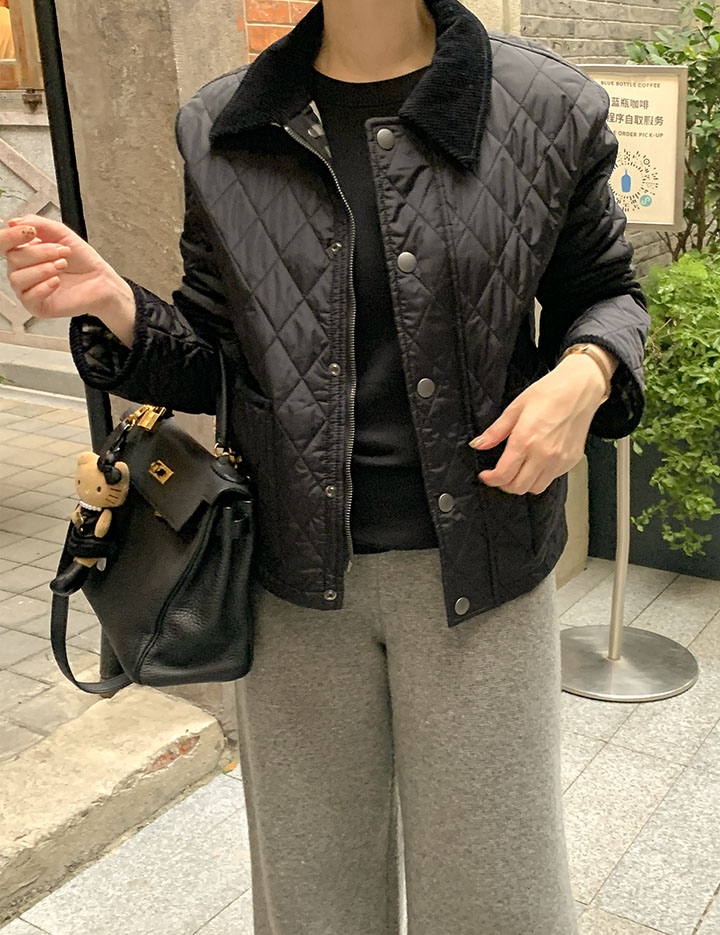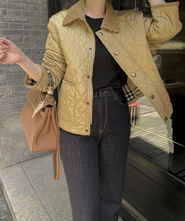 クラシックムードのコーデュロイカラーキルティングショット ジャンパ 軽くてオシャレに着こなせるソフィスティケイトデザイン