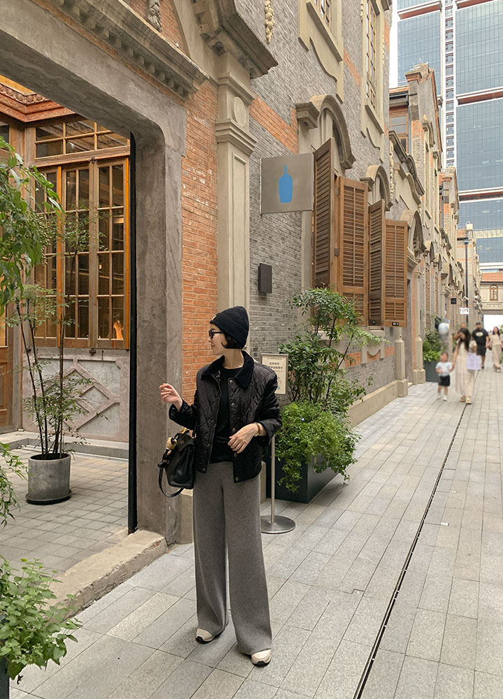 自作、パーティクルと同時に細身に見えるニットパンツクアンクルック完成テムでどこにもこだわりコーディネート!