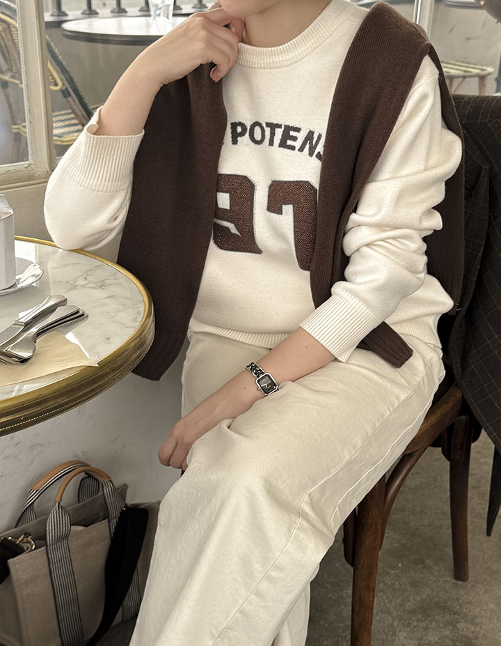 感覚的なレタリングポイントでオシャレなニットやわらかいタッチ感、ソフィスティケイトカジュアルムードでいいです