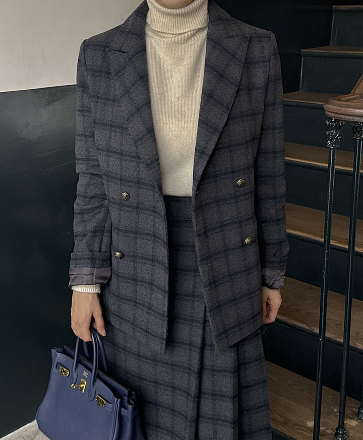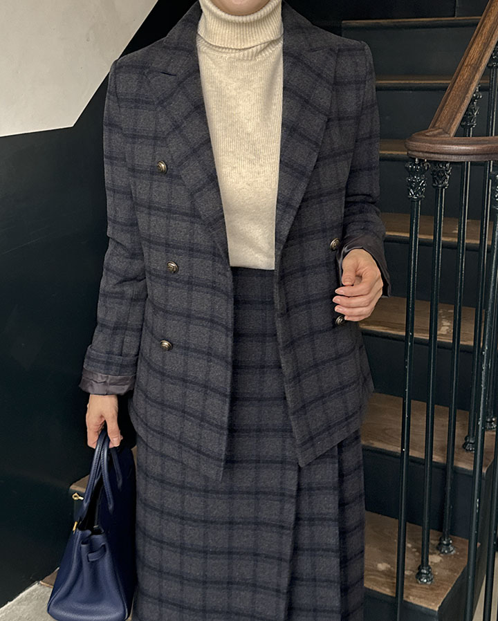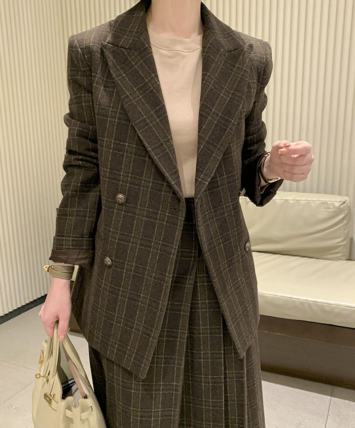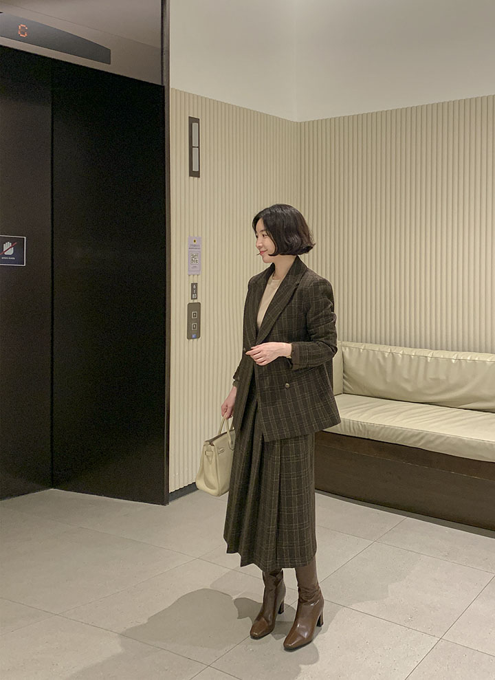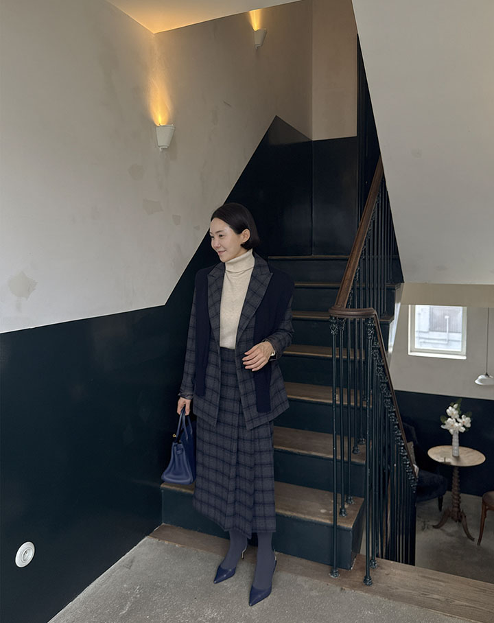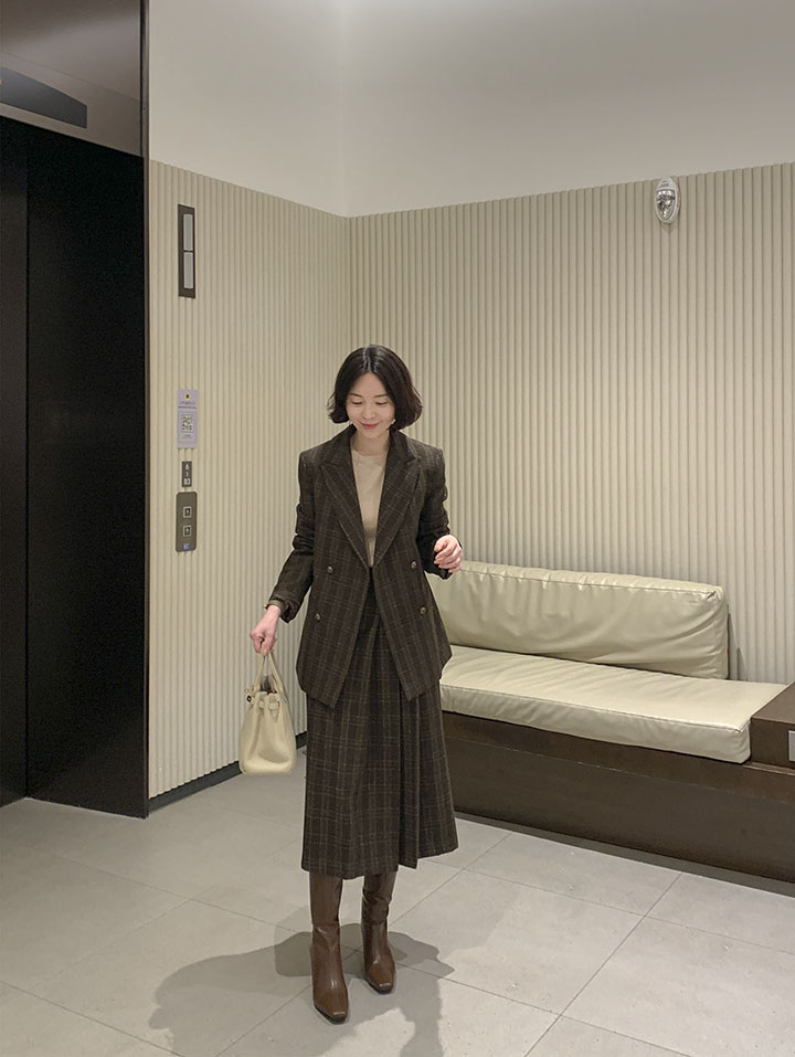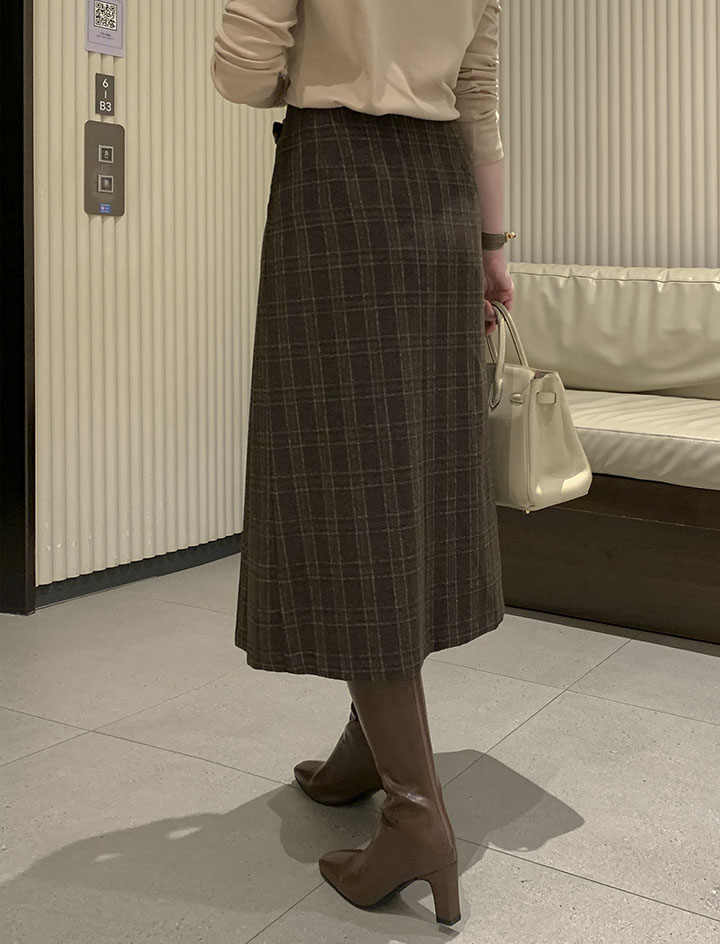 落ち着いたクラシックの定石、チェックウールスカート ふわふわのウール素材と、落ち着いたシルエットでスタイリッシュに