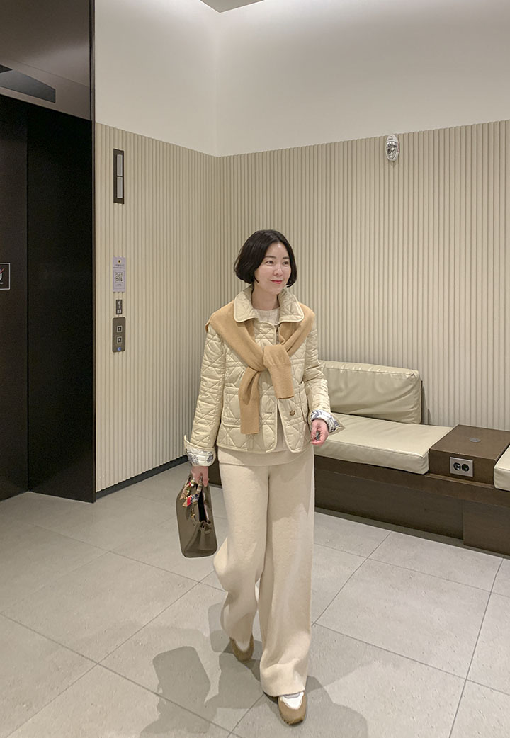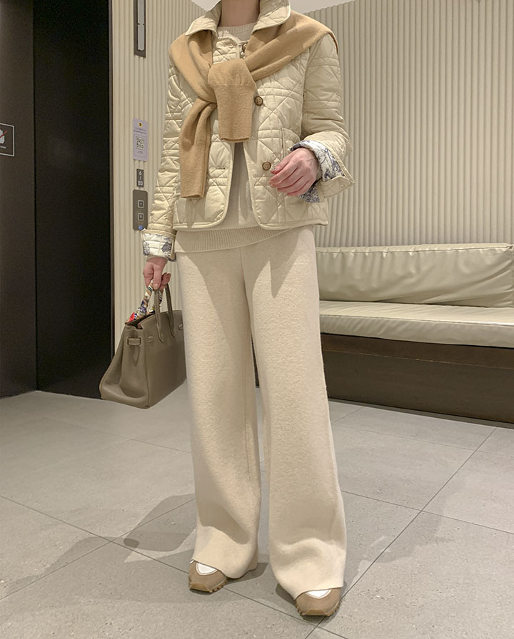 自作、パーティクルと同時に細身に見えるニットパンツクアンクルック完成テムでどこにもこだわりコーディネート!