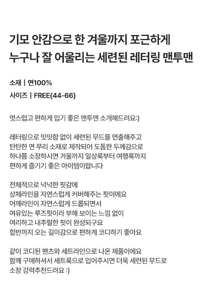 起毛裏地で一冬までふんわりと誰にでも似合うソフィスティケイトレタリングマンツーマン