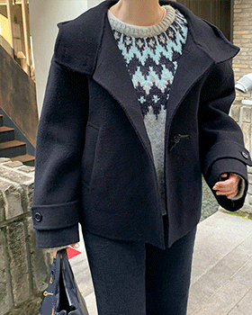 ウール100% クラシックデザインでソフィスティケイト雰囲気 ふわふわで豪華なハイネックフードダッフルコート