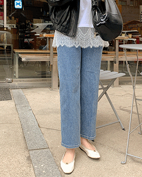 すっきりきれいなストレートデニムパンツ足首が見えるすっきりしたキビ感でオシャレに