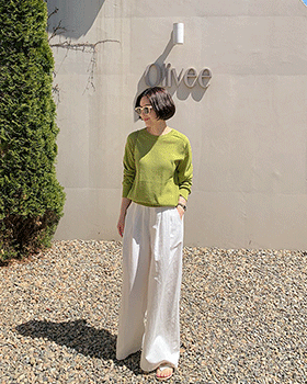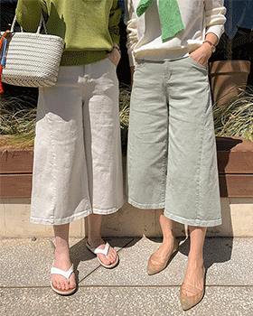 斜線切開ラインでさらにオシャレにさわやかなキビ感の8部ワイド綿パンツ